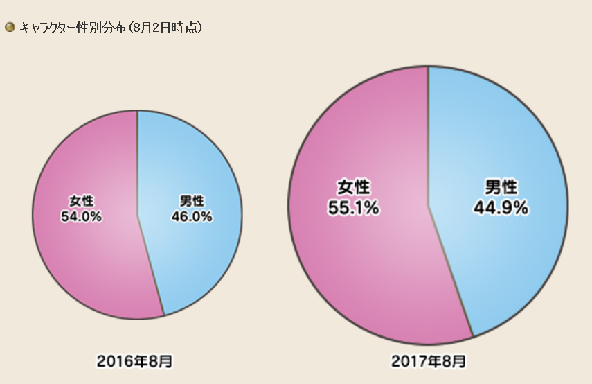 2017年8月のアストルティア国勢調査による男女キャラ比。