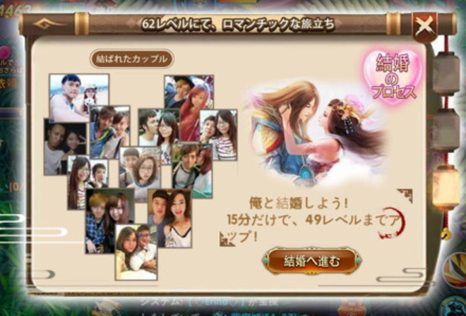 加えて、コレマタ驚いたのは、ユーザーがゲーム内で結婚や恋愛をすることに対する、各運営陣の積極的な姿勢です。